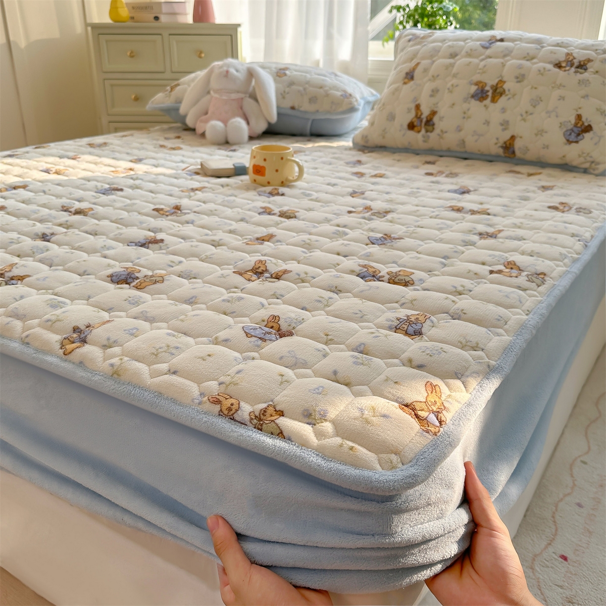 当前位置: 居眠> 产品中心 > 2025新款牛奶绒印花夹棉床笠B